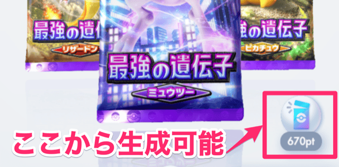 ポケポケのカード生成は、パック開封ポイントを使って行います。